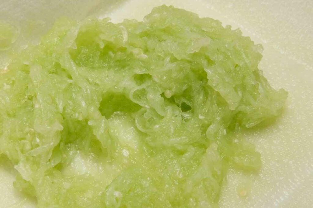 - On a plate lined with several paper towels, finely grate the cucumber using a box grater. Over a sink, squeeze out as much liquid as you can. Repeat 1-2 more times, using a fresh paper towel, until you cannot squeeze any more liquid out of the cucumber.