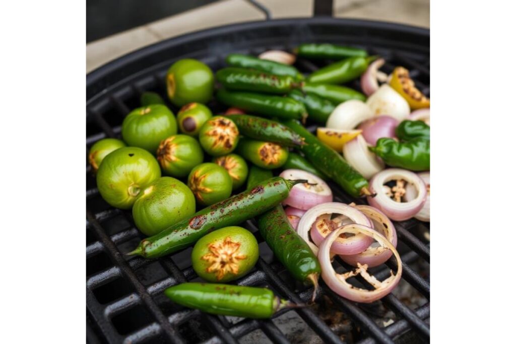 - Char the tomatillos, chile, and garlic until blackened in spots. I prefer a charcoal grill, though gas works too. If you are unable to grill, set the tomatillos in a foil-lined sheet pan, and broil until blackened in spots. Place the chile and garlic in a dry cast-iron skillet, and char.