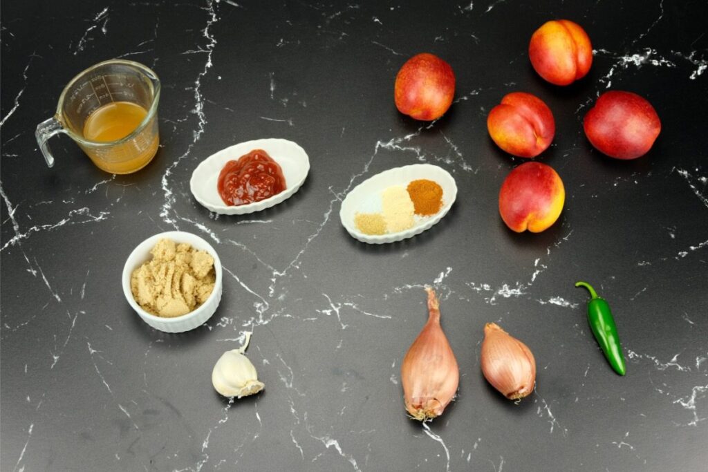 - Roughly chop the shallots, garlic, and jalapeño, and roast on a grill or in a hot oven until softened and fragrant, 5-10 minutes. Add to a heavy saucepan with the stone fruit and spices, and cook for 4-5 minutes. Add the remaining ingredients, and stir to combine.
