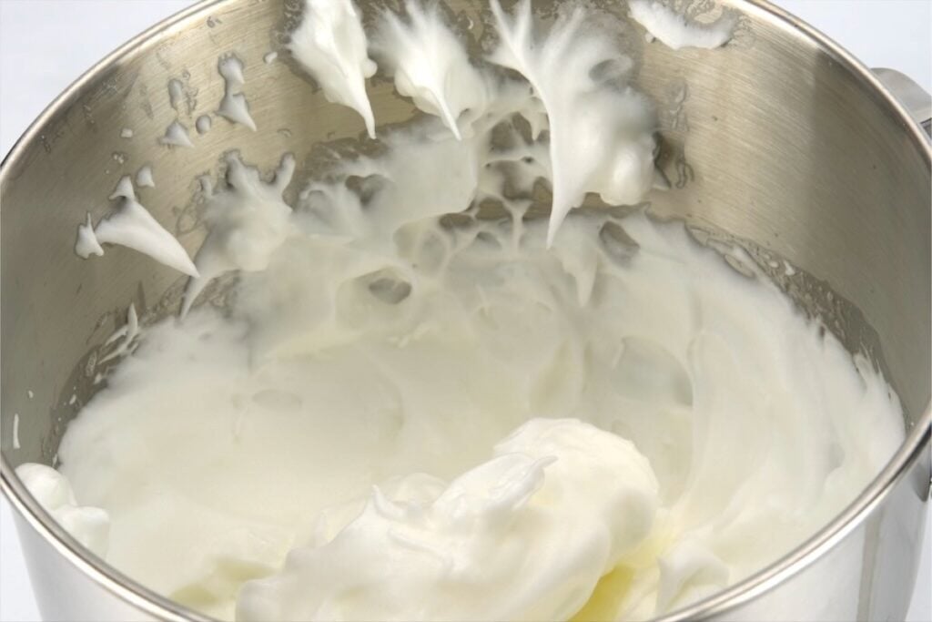 - Add the egg whites to a large, clean mixing bowl and have a hand mixer ready, or add to the bowl of your stand mixer fitted with the balloon whisk attachment.Add the cream of tartar and beat the egg whites to stiff peaks.