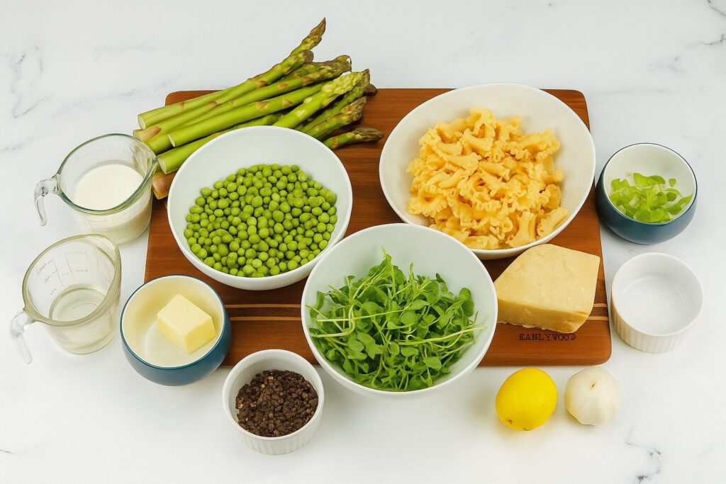 - 8 ounces (225g) uncooked sfoglini or other ridged pasta